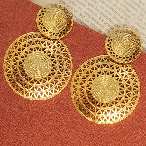 El Arete Max Filigrana es una pieza poderosa y delicada al mismo tiempo. Su diseño elaborado con finos hilos metálicos evoca lo sagrado, lo femenino y lo eterno. Bañado en oro y hecho a mano, es ideal para mujeres que quieren brillar con intención y belleza auténtica.