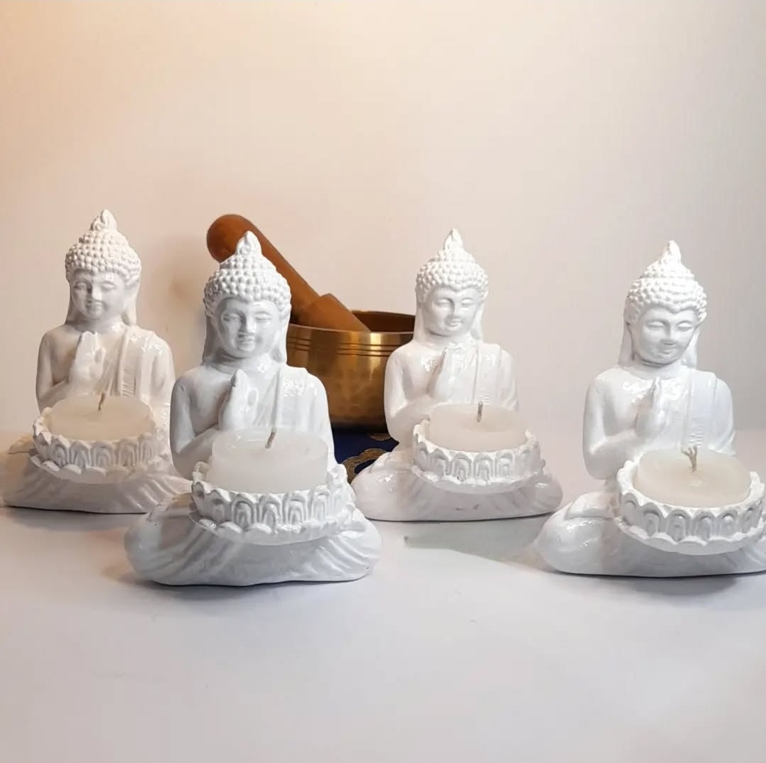 Este buda porta velas en cerámica es una pieza delicada y significativa que une la espiritualidad del Buda con la calidez de la luz. Su diseño elegante y detallado convierte cualquier rincón en un refugio de calma, ideal para momentos de meditación, relajación o simplemente para crear un ambiente armonioso en casa o en tu espacio de trabajo.