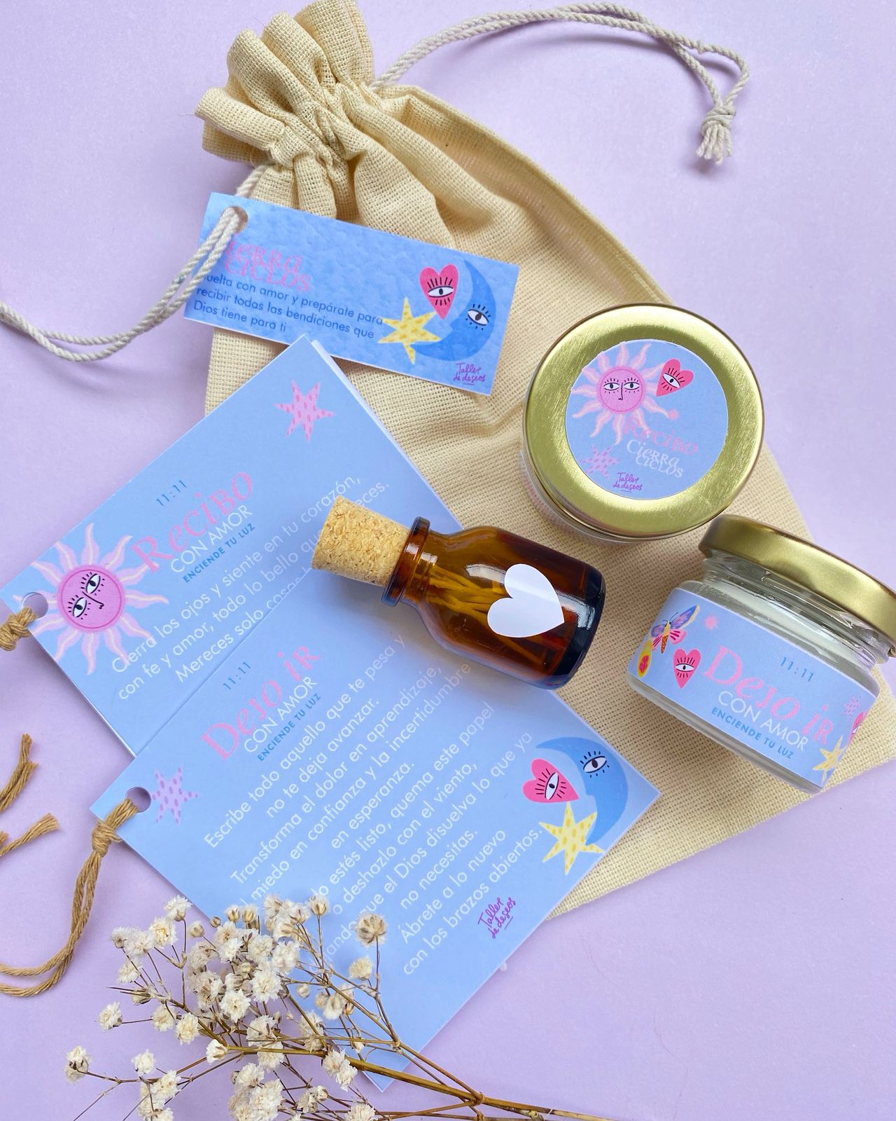 Enciende la vela “Dejo ir” y escribe en la tarjeta aquello que deseas soltar.
