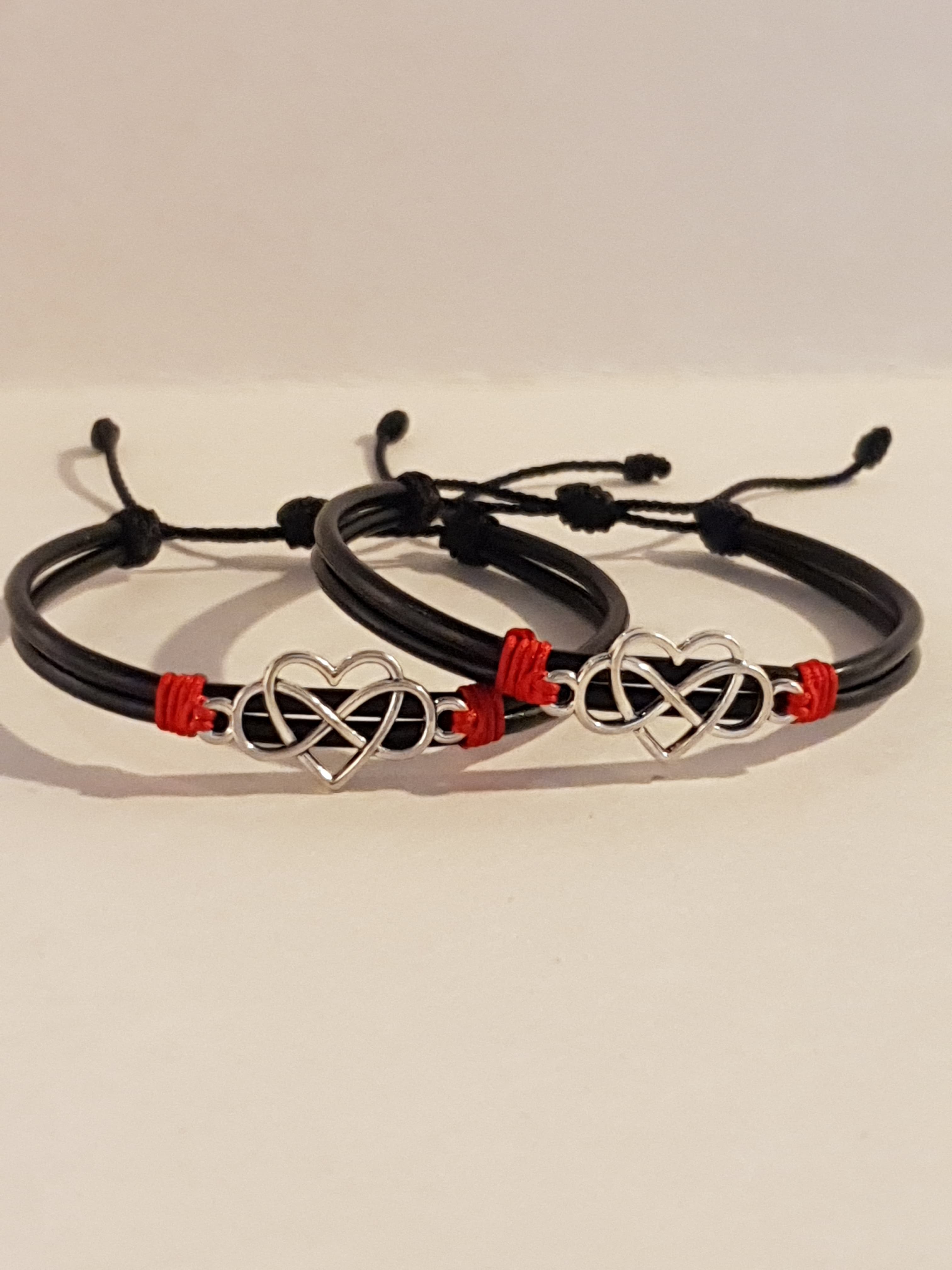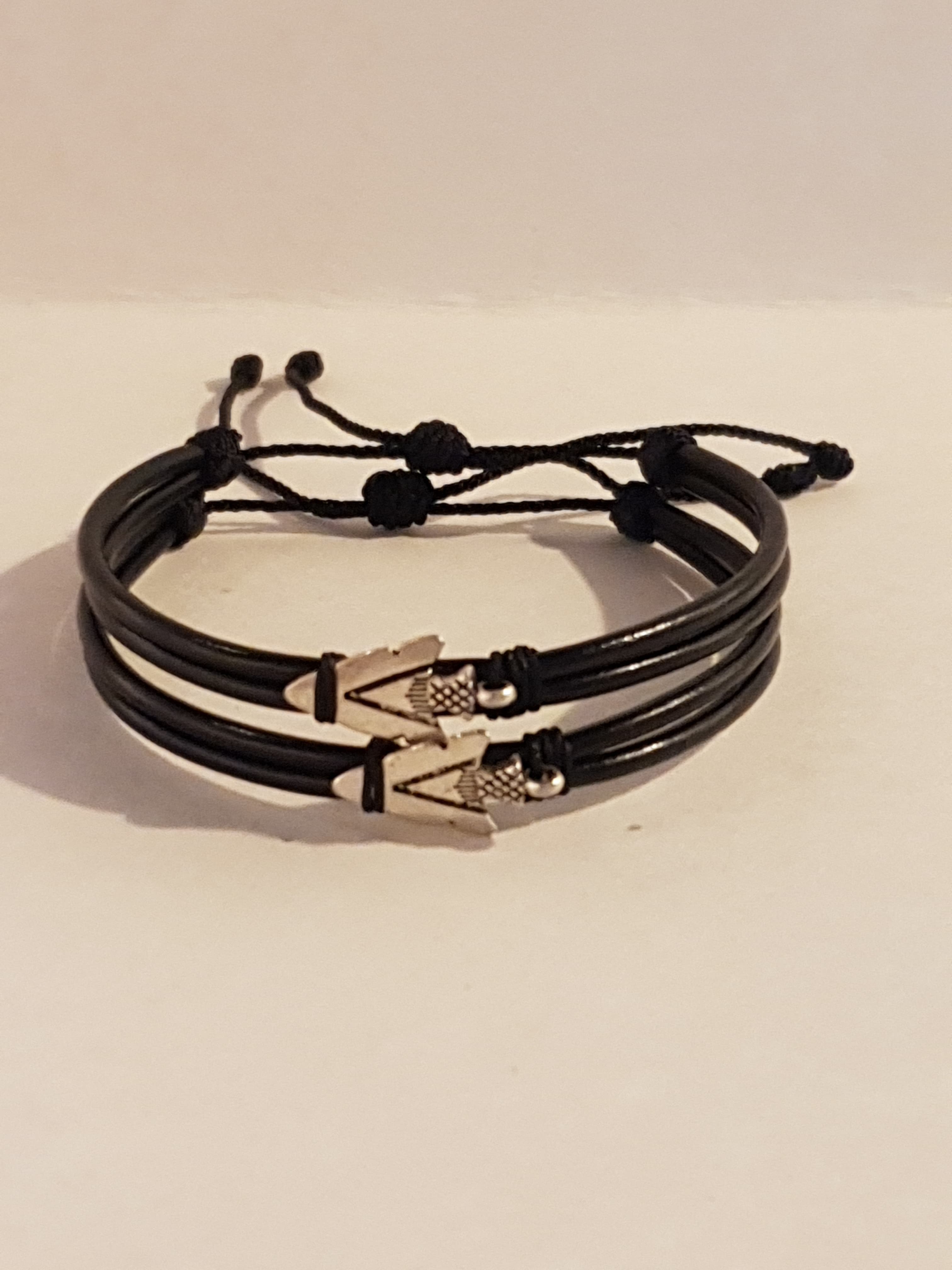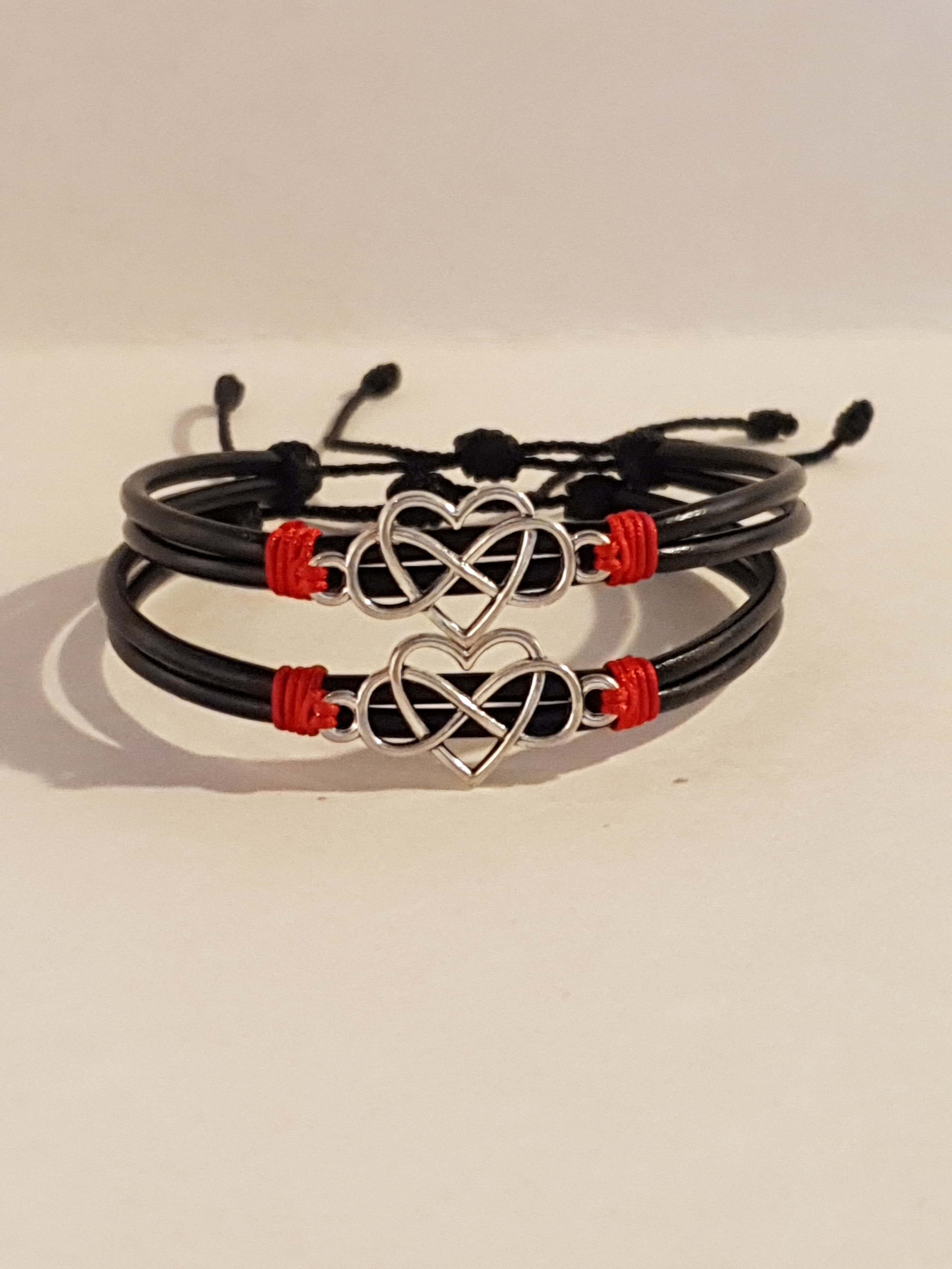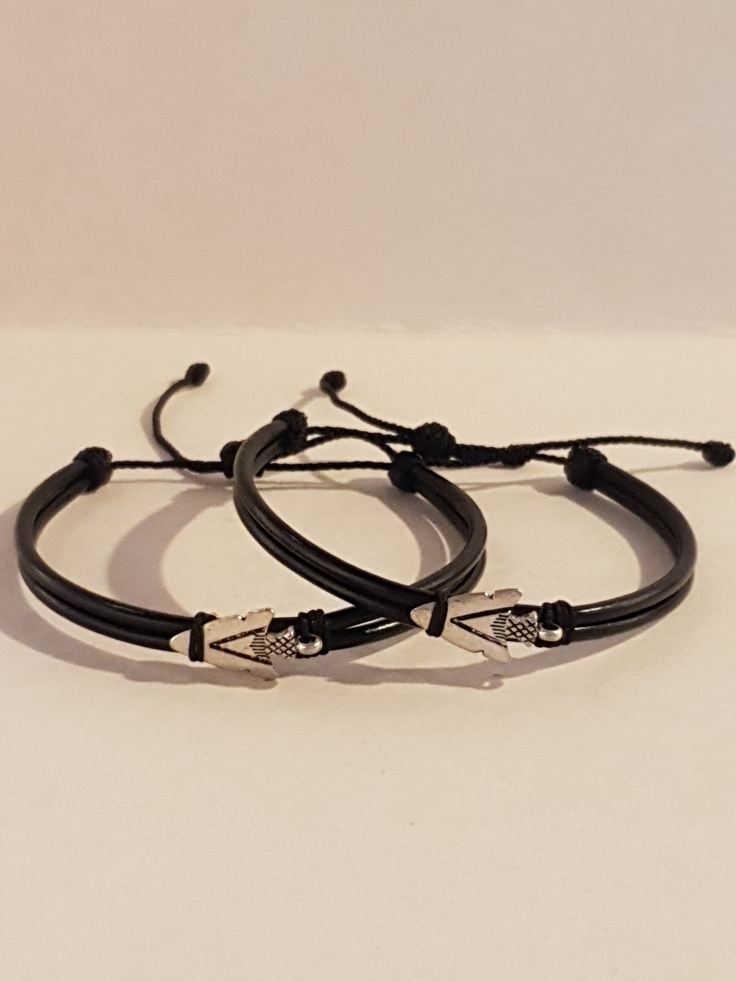 Un par de Manillas de cuero ajustables, creadas para compartir con esa persona que te acompaña en el viaje de la vida. Cada símbolo representa una conexión especial: raíces compartidas, dirección, fe, amor eterno y más.