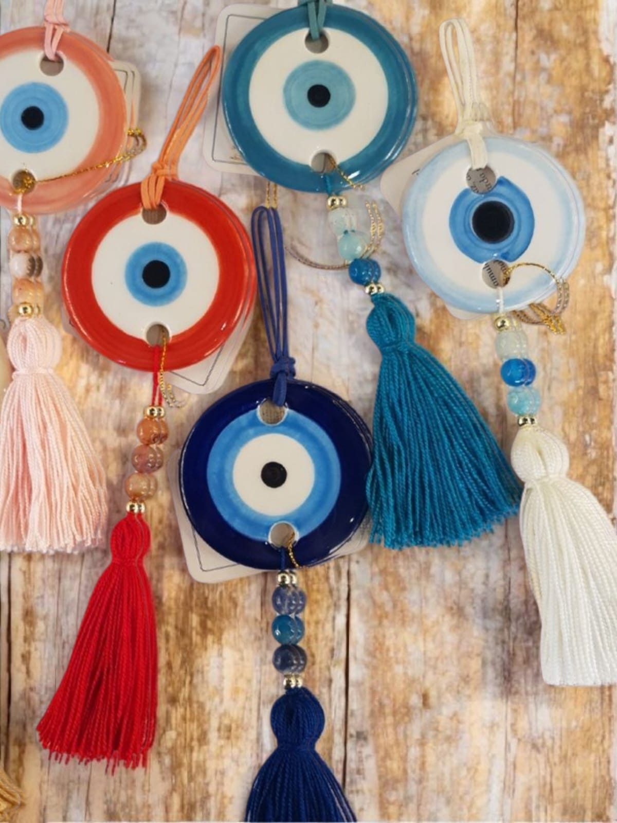 Amuleto en cerámica pintado a mano, con cuarzos naturales y cinta para colgar. El color rosa representa amor propio, compasión y energía emocional suave. Ideal para espacios personales, habitaciones o como regalo lleno de intención 🧿💞