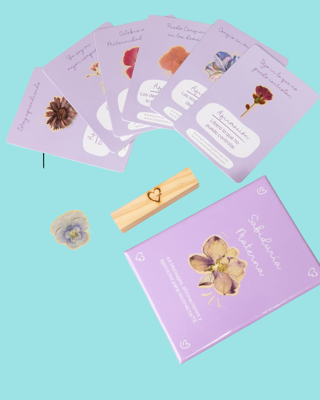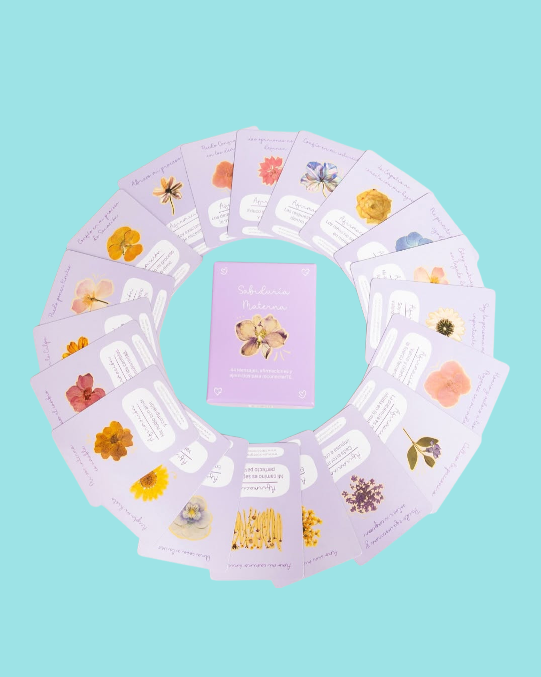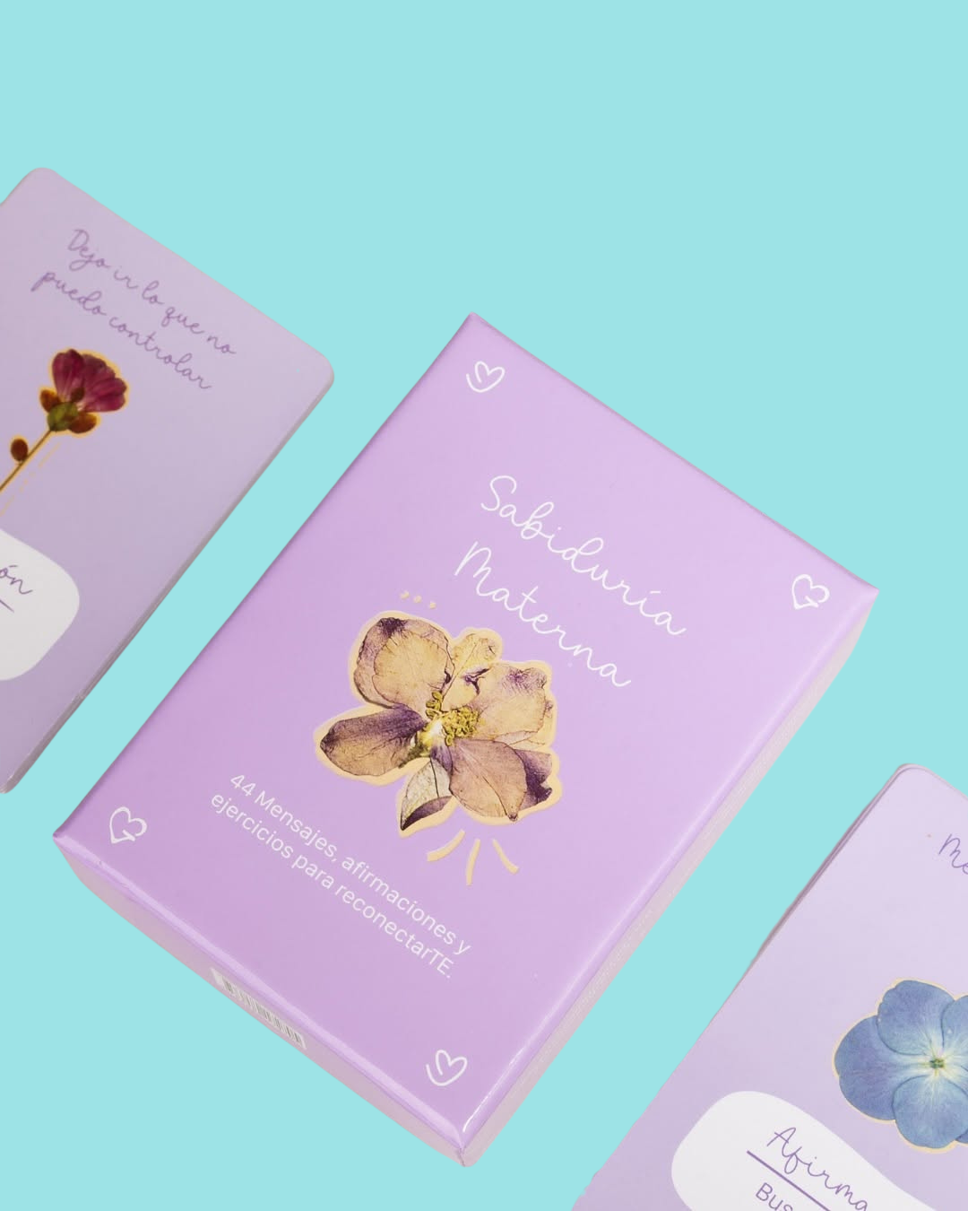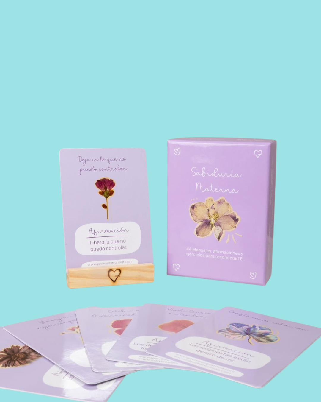 Una guía de 44 cartas para acompañarte en el viaje de maternar con más confianza, presencia y amor propio. Cada carta contiene un mensaje, una afirmación y un ejercicio práctico que te reconecta contigo.