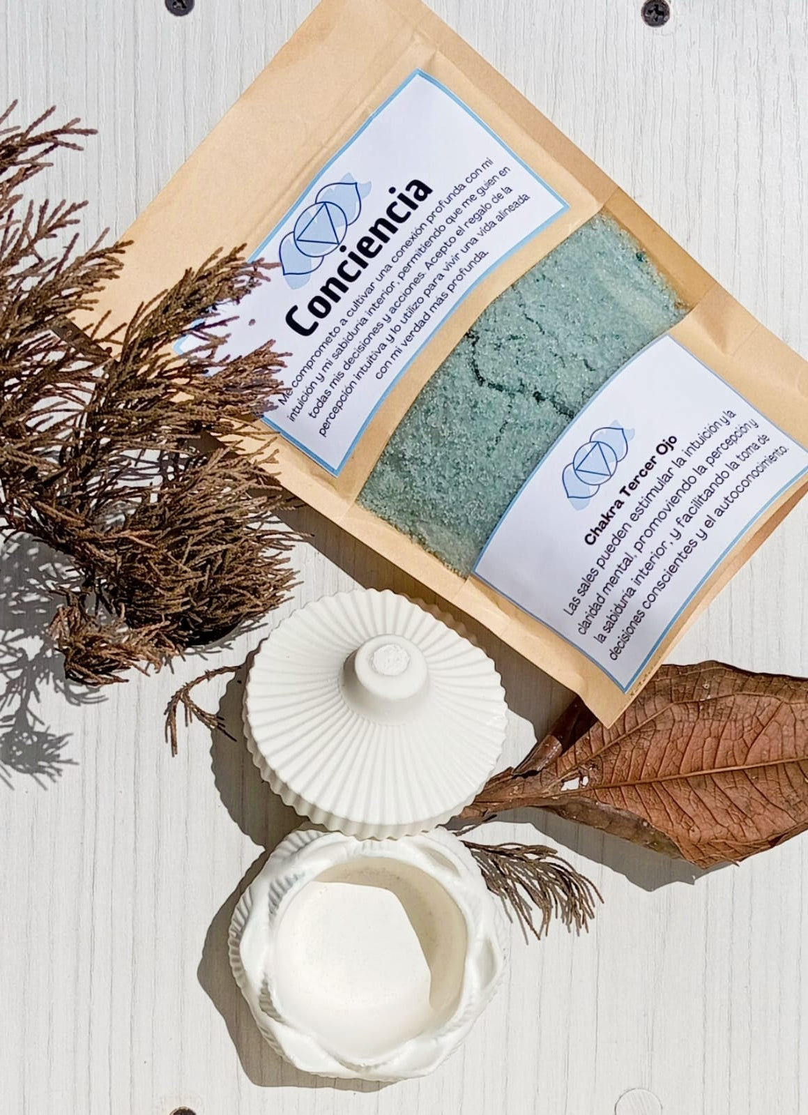 Conecta con tu visión interna y despierta tu sabiduría con estas sales para el Chakra del Tercer Ojo (Ajna). Ayudan a calmar la mente, ver con claridad y confiar en tu guía interior.