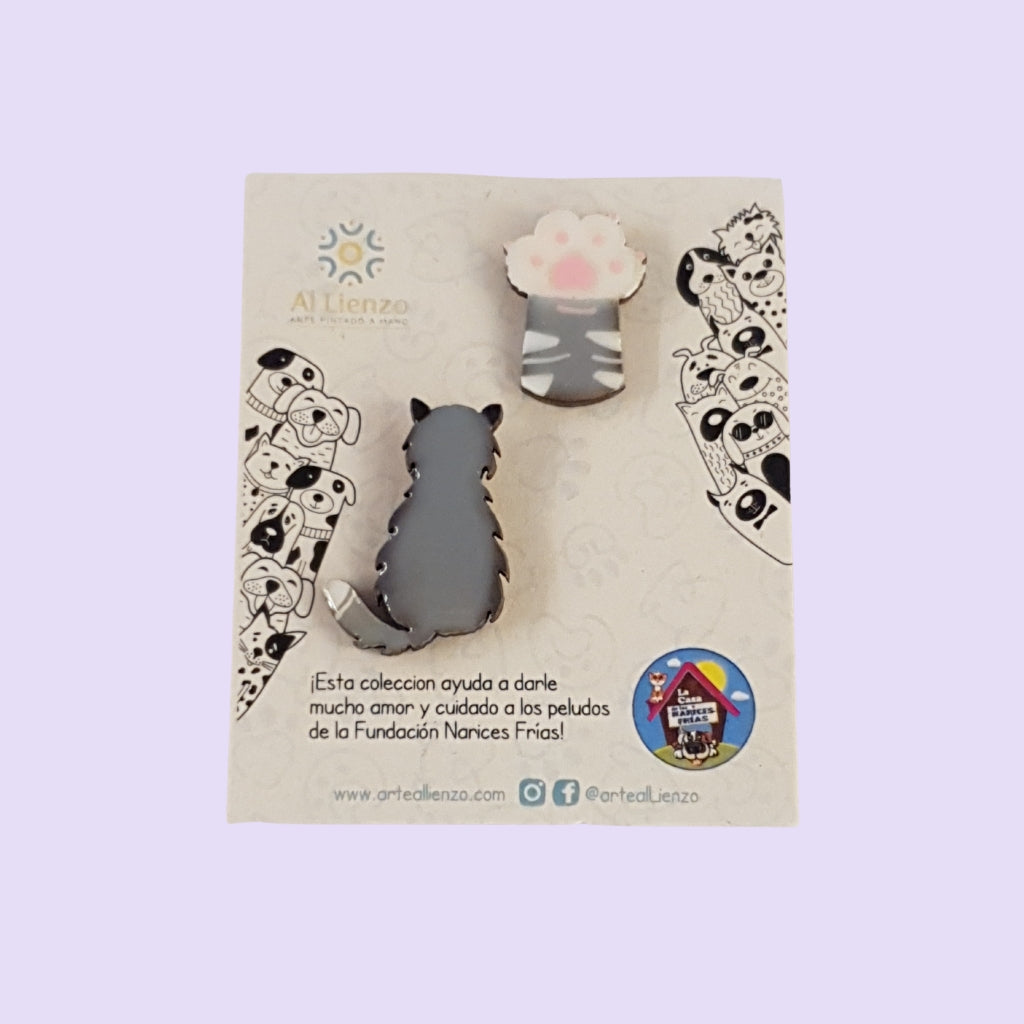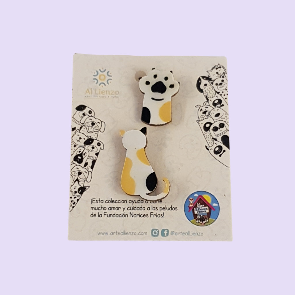 Set de 2 pines de madera pintados a mano con ilustraciones adorables de mascotas. Cada uno viene con una frase especial que celebra el vínculo con nuestros compañeros peludos. Perfectos para regalar, compartir o llevar contigo como recordatorio de amor incondicional 🐾💖