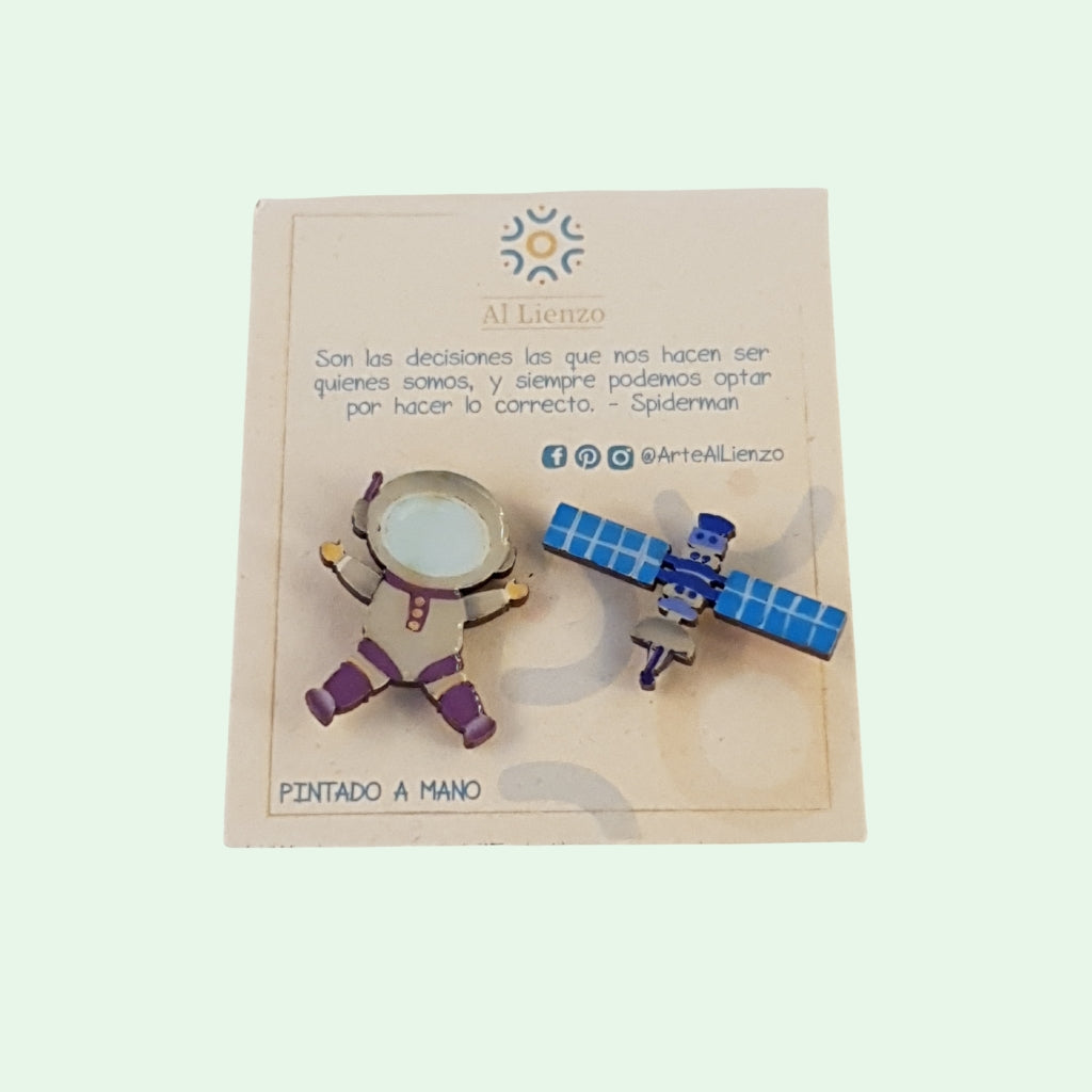 Dale un toque único y encantador a tu ropa, bolso o mochila con este set de pines ilustrados de personajes icónicos, elaborados artesanalmente en madera y pintados a mano con amor 💕✨