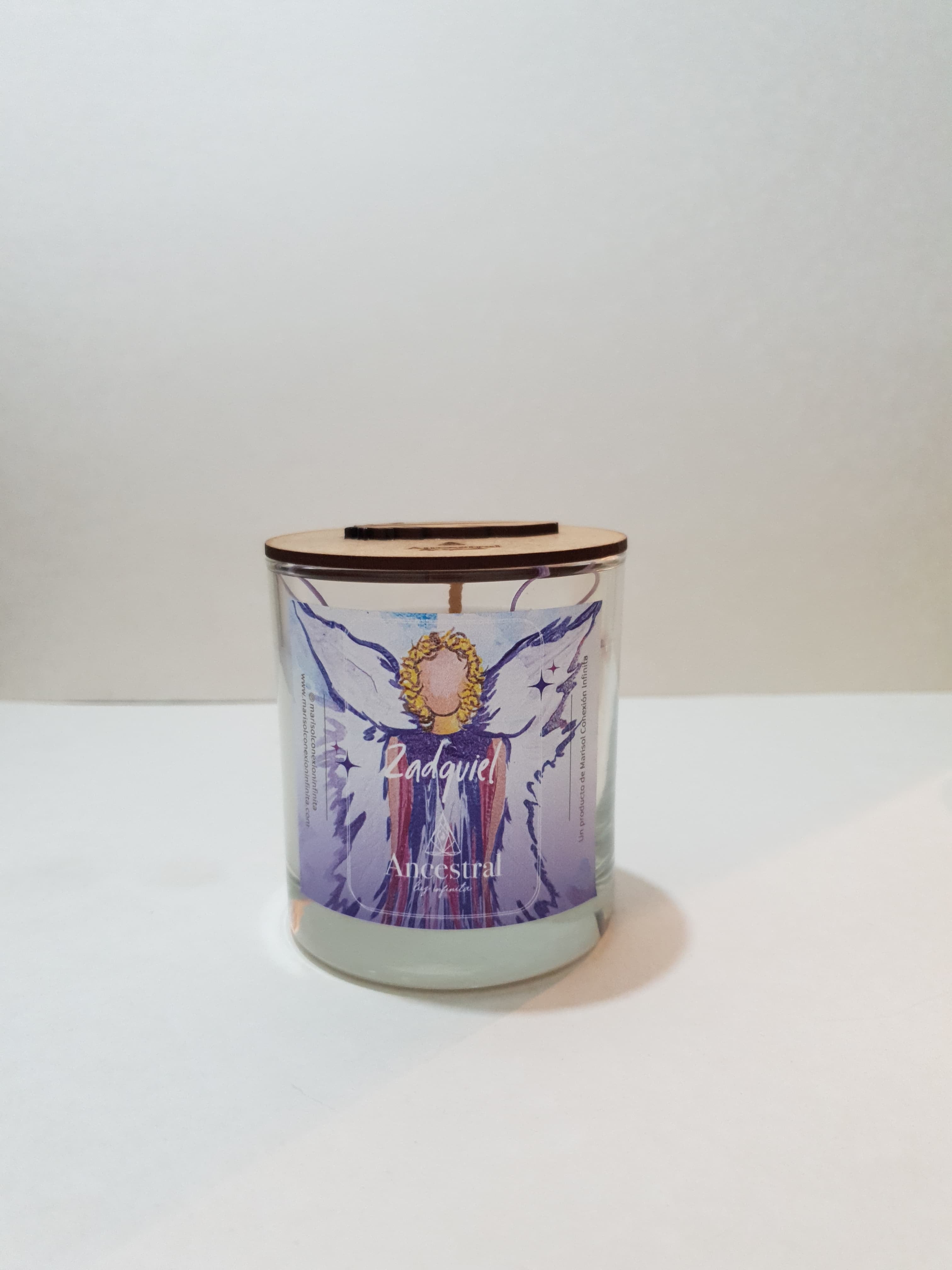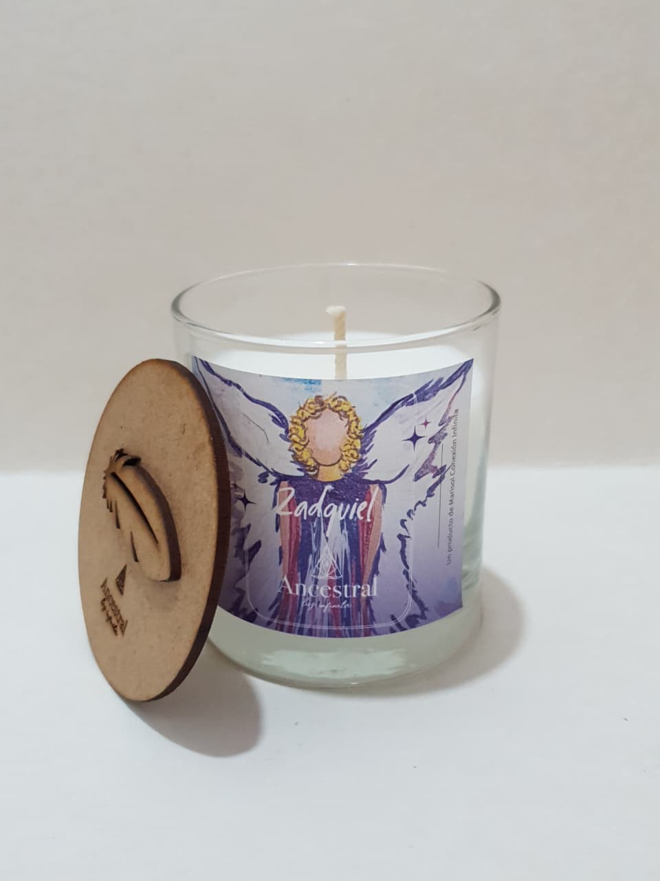 Vela artesanal de 10 oz inspirada en la energía transformadora del Arcángel Zadquiel. Con notas de lavanda, incienso y mora negra. Incluye tapa de MDF con diseño exclusivo y caja decorativa. Ideal para soltar, sanar y elevar tu energía 💜🔥